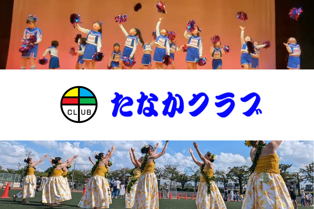 台東区総合型スポーツクラブたなかクラブのキッズチアダンス教室とフラダンス教室で練習をしている皆さんです。たなかクラブの教室への参加は広報たいとうで募集告知をご覧ください。区のイベントへの出演なども積極的に行っています。