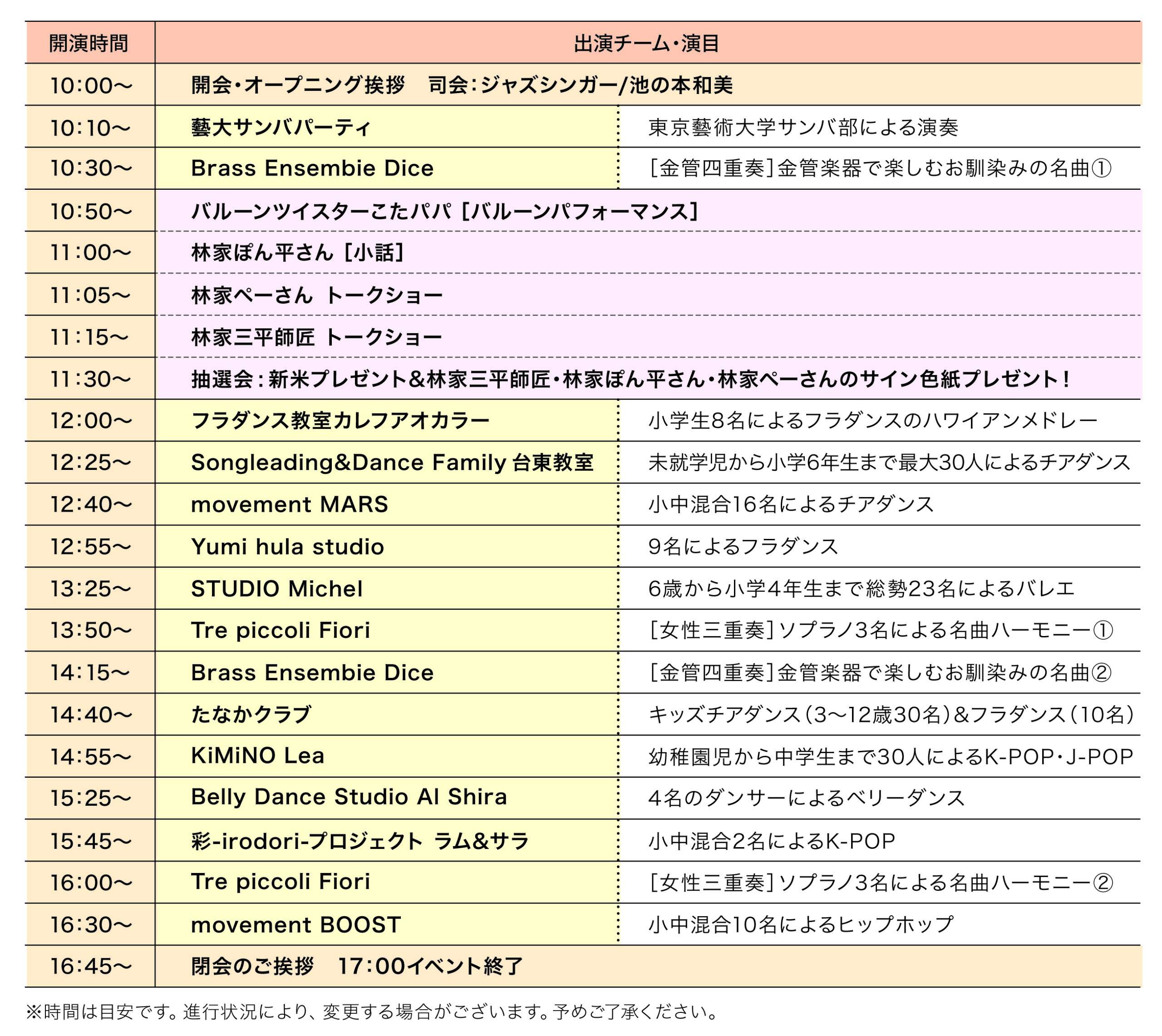 雨天決行 ※荒天の場合、中止する場合がございます。SNSをご確認ください。