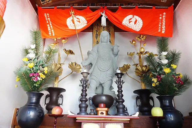 商売繁盛の神様「大黒天」が祀られています。右に弁財天、左に毘沙門天の3つの顔を持ちます。
