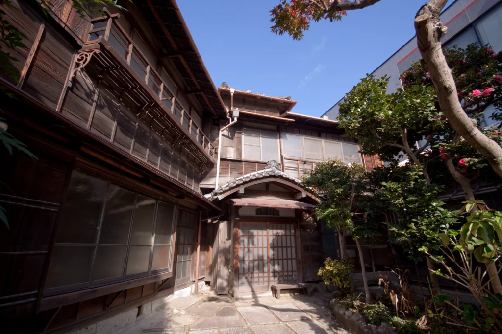 3棟の住宅と路地で構成される上野桜木あたりは、昭和13年に一括して建設され、当初は各戸の塀で囲まれていました。日本橋浜町で金融を取り扱う塚越商事の本宅および賃貸として使用されていましたが、平成27年に複合施設としてリニューアルしました。木造2階建、寄棟造の桟瓦葺、下見板張りの和風の意匠を備えます。中廊下式で、洋風の板間と和風の座敷を融合させる間取りからは、昭和初期という時代背景が感じられます。